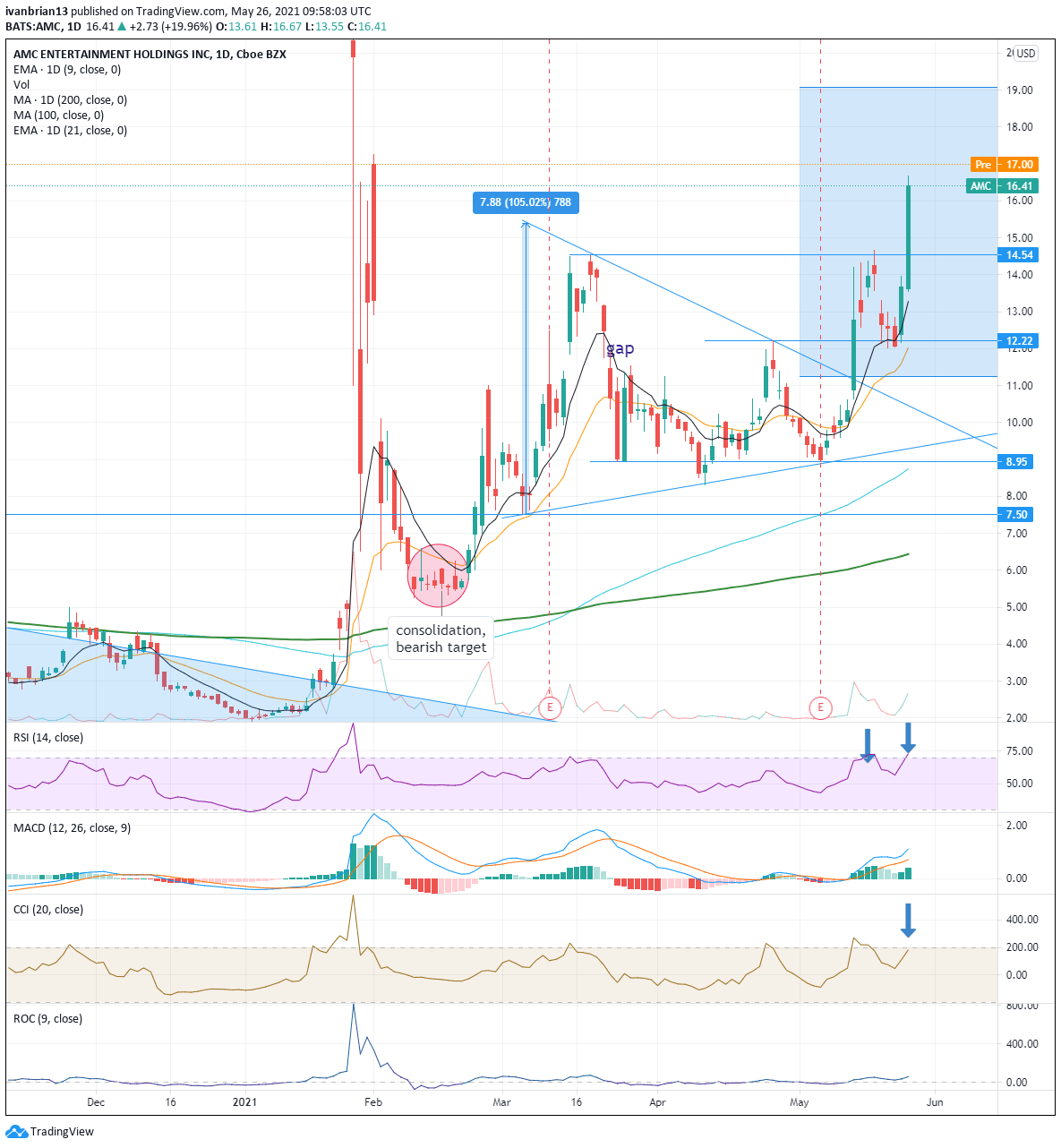AMC Entertainment Holdings Stock News: AMC breaks $14.54 resistance, to the moon next resistance