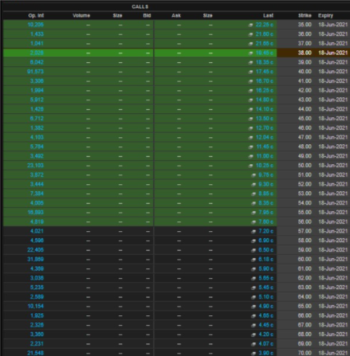 From the chart above, we can take a closer look at the big one for this Friday – the $40 call. The volume has really only picked up over the last two to three weeks. As the AMC share price has spiked, it has drawn more options purchasers into the stock for pretty obvious and understandable reasons. The bullishness of the purchases though is what is most noticeable. The volume in the $40 call picks up between May 25 to June 3. On May 25, AMC was trading at $13, so buying a $40 call was way out of the money, and the option was trading around $0.60 cents. Now it is trading at $17.45, showing the power of options to accelerate potential profits while limiting losses, assuming you are not writing options. This is a powerful tool to have at a trader's disposal, especially when meme stocks are going parabolic.