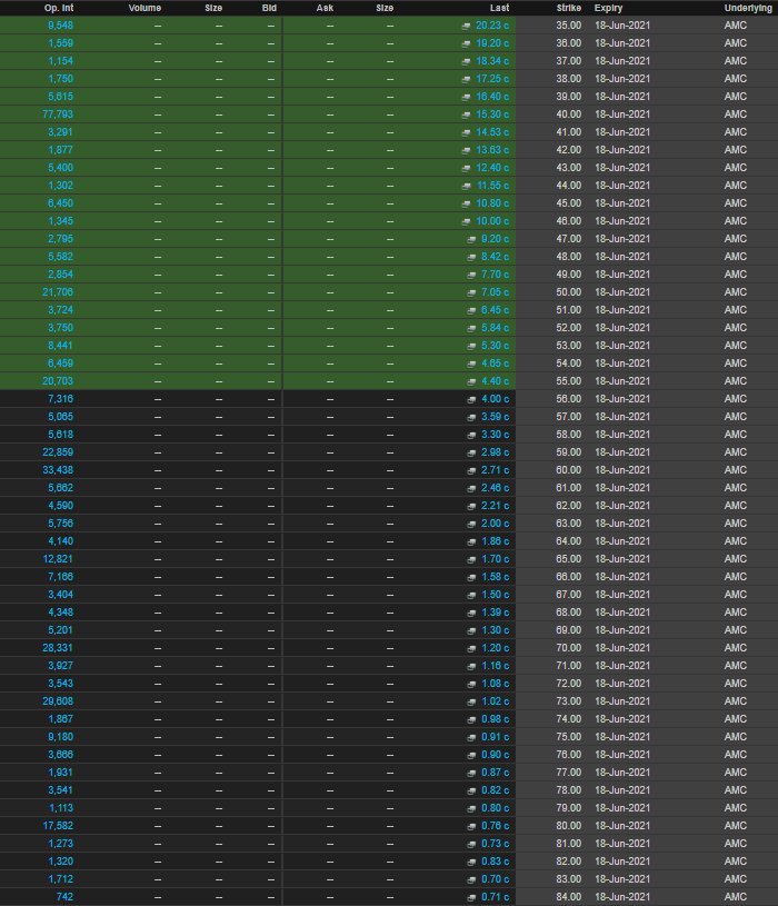 Each option contract is for 100 AMC shares, so approximately 420,000 option contracts between $35 and $84 strikes on this page alone mean 42 million shares will expire if AMC closes above $84 on Friday. It is unlikely that it will close that high, but this is AMC we are talking about! The flip side is the more options that expire worthless or unexercised the more market makers' gamma unwind will see selling pressure on AMC shares.