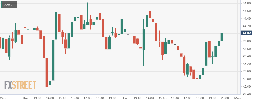 Tuesday's pre-market shows pretty much more of the same indecision with AMC slightly higher at $44.30. Friday's unemployment report has meant equities are likely to keep their record-breaking strength as the Fed is unlikely to taper or raise interest rates any time soon.