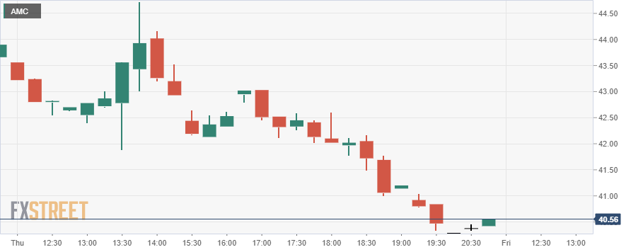 AMC had broken out of its range last week with a powerful 20% surge and finally looked to be aiming higher. We identified $40 as the breakout level here at FXStreet and the move was sharp. Breakouts can retest their original breakout level but must not break back below. That ends the bullish trend. In the case of AMC, $40 is the breakout level it cannot go lower than. The stock got pretty close yesterday, bottoming out at $40.34.