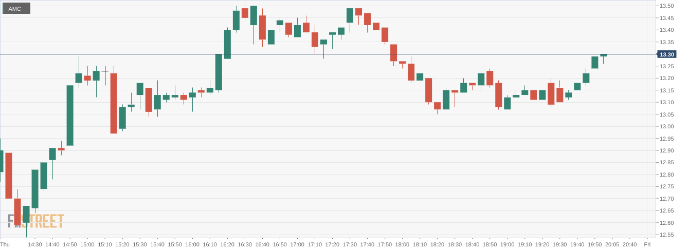 NYSE:AMC continued its volatile behavior as the leading movie theater chain climbed higher alongside the broader markets. On Thursday, shares of AMC jumped by 3.83% and closed the trading session at $13.30. The markets were choppy once again although all three major averages snapped their two-day losing streaks and posted a positive day across the board. The Dow Jones, which was down by as many as 300 basis points earlier in the session, added 435 basis points, while the S&P 500 and NASDAQ rose by 1.84% and 2.69% respectively. Tech stocks in particular had a strong showing as investors clearly believe that many high growth names have been oversold.