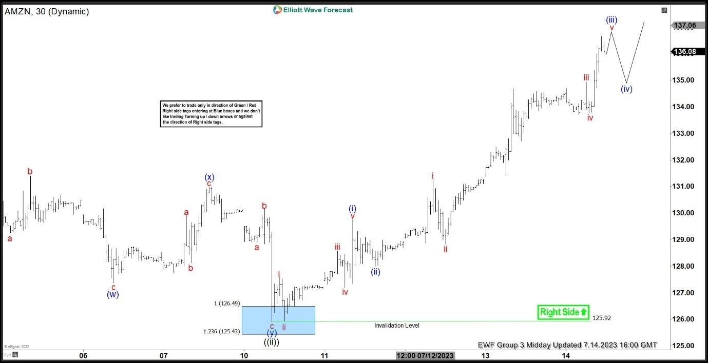 AMZN latest 1-hour Elliott Wave chart from 7.14.2023