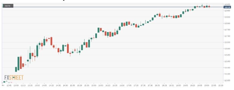Amazon.com (AMZN) powered higher on Friday as mega-cap tech stocks rallied on a report that the Fed could slow the pace of its rate hikes. Shares of AMZN gained 3.5% and closed the trading week at a price of $119.32. All three major averages soared into the weekend as treasury bond yields retreated and the possibility of reduced rate hikes boosted investor sentiment. Each major index also posted positive gains this week as Wall Street saw its best week of trading since June. Overall, the Dow Jones added 2.5%, the S&P 500 gained 2.4%, and the Nasdaq rose by 2.3% during the session.
