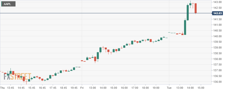 - AAPL shares break $140 in a continuation of a perfect technical move.