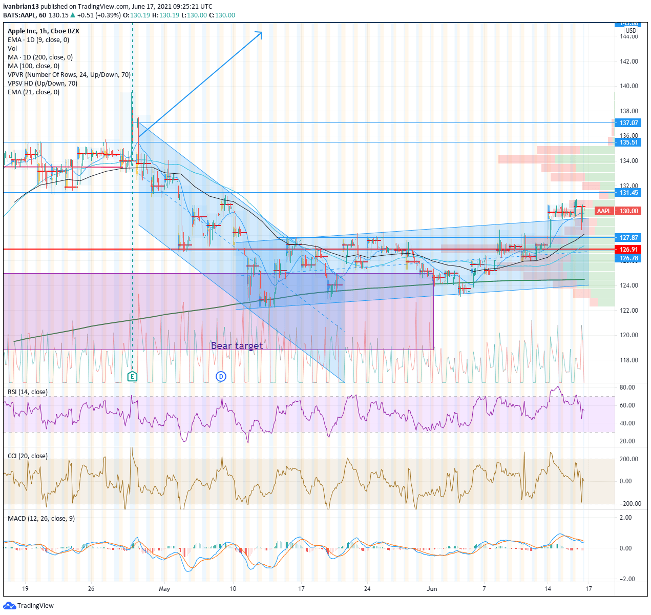 - AAPL shares target a break of $131.45 resistance.