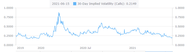 Volatility in Apple has been steadily declining since the pandemic, March 2020 spike means it may be a good time to make use of the relative cheapness of buying call options to try and take advantage of any price acceleration.
