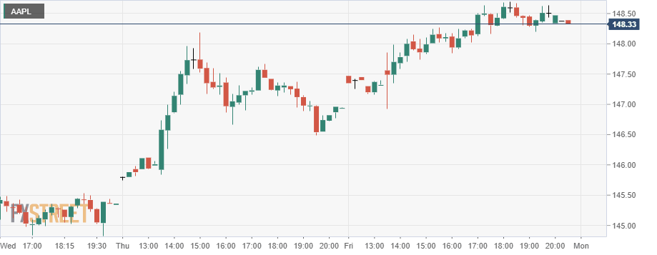 Update: Apple stock continues to push on as early trading continues with the stock sitting just below all-time highs. Results tomorrow are highly anticipated and if previous ones are anything to go by should be a blowout. However, this does not necessarily follow through to the stock pushing higher as can be seen from the previous two releases. AAPL is up 0.6% at $149.44.