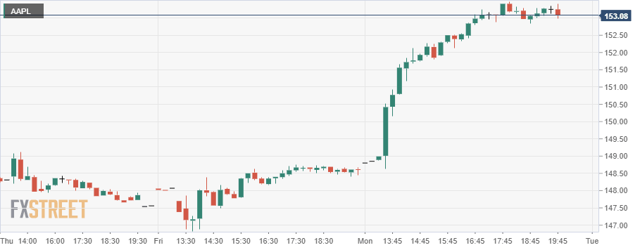 - AAPL breaks $150 and closes at $153.12.