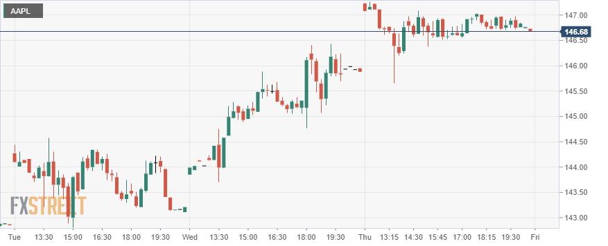 The move on Wednesday had closed toward the high of the daily range, which is usually taken as a positive. Thursday duly saw a continuation with a gap open that Apple filled before rallying back up and stabilizing around $146. Apple stock closed at $146.83 for a gain of 0.67%. We do mention this a lot, but it is amazing how many times markets look to fill a gap.