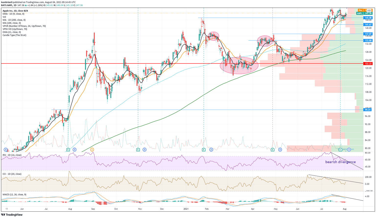 - The tech giant stock showing bearish divergence on RSI.