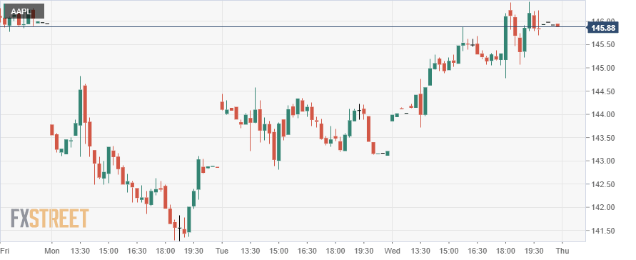After a poor session on Tuesday with a tiny range, Wednesday was a better performance with AAPL stock opening strongly and pushing on for much of the session, eventually closing up 1.69% at $145.85. Nice and steady movement, but there is still more to do before we can turn bullish on Apple.