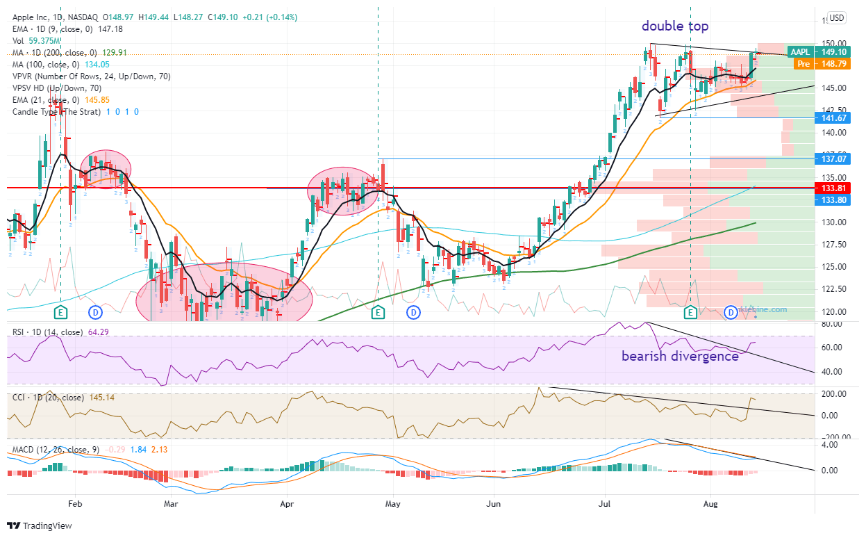 - Apple is still indecisive and stalled near all-time highs.