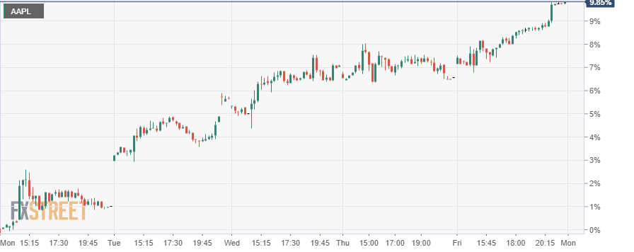 The 15-minute chart above shows the strong trend, with gains of just under 10% for the week. Apple is already looking higher in Monday's premarket with the stock at $181.35. While we called for the stock to hit $200 before year-end, Loup Ventures analyst Gene Munster now says his $200 target was too conservative. Certainly, the latest twist in the so-called Epic games case helped Apple shares. Apple won a reprieve from a US court so that it does not have to implement changes to its app store until after the appeal. An appeal could take several years to hear.