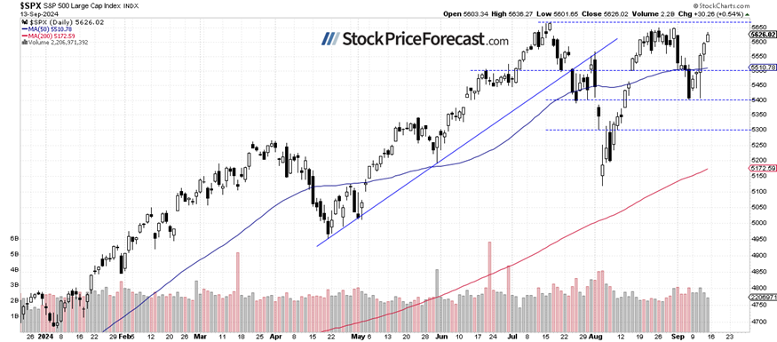 The S&P 500 has broken above the 5,600 level, approaching its mid-July record high.