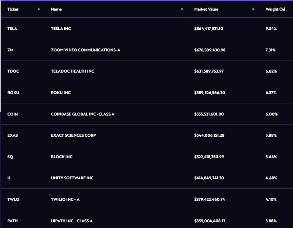 ARKK Top 10 holdings, source: ark-funds.com