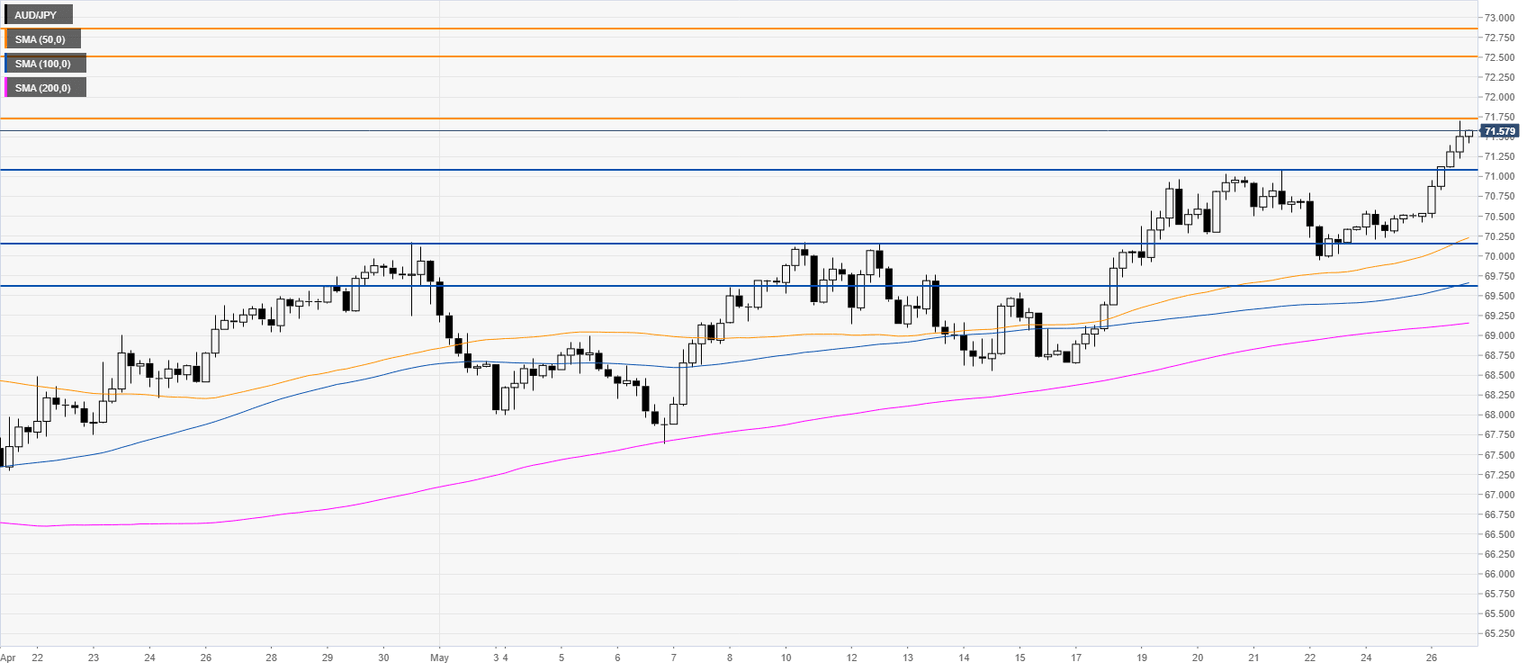 - AUD/JPY is trading in 12-week highs as the bullish sentiment in Wall Street is gaining steam.