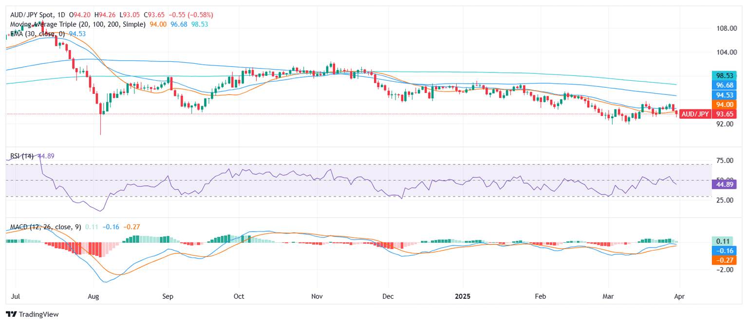 AUD/JPY Price Analysis: Bearish pressure builds as pair slips below 94.00 zone