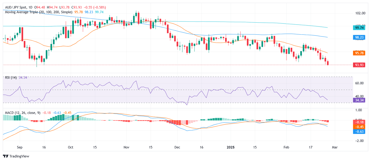 The AUD/JPY pair extended its losses on Wednesday, marking a two-day losing streak as sellers maintained their grip on the market. The cross slipped closer to the 94.00 zone, a level not seen since mid-September, as bearish momentum continued to build.