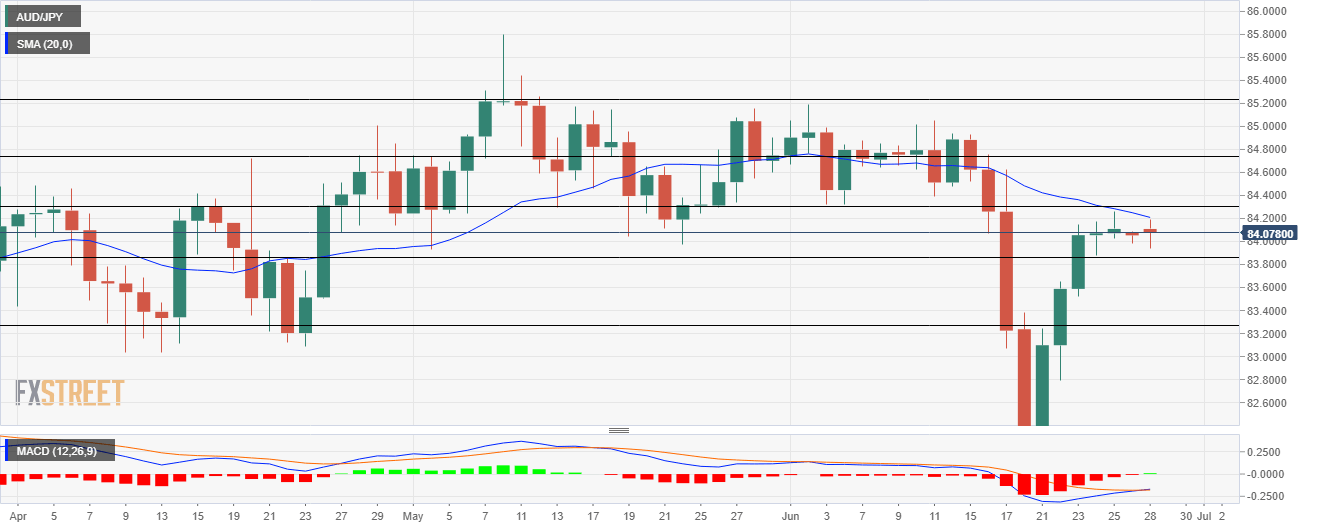 AUD/JPY Price Analysis: Clings near 84.10, bulls battles below 20-day SMA
