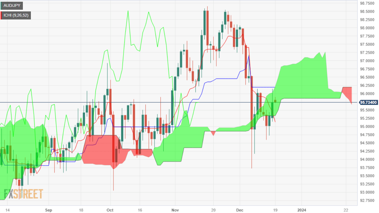 Given the fundamental backdrop, the AUD/JPY has recovered some ground, with the pair breaking the bottom of the Ichimoku Cloud (Kumo), a resistance area at around 95.32, opening the door to test the 96.00 figure. A clear break could pave the way towards the confluence of the Kijun-Sen and the Senkou Span B at 96.14. Further upside is seen, once cleared, with the 96.82 November 21 low up next, followed by the 97.00 figure.
