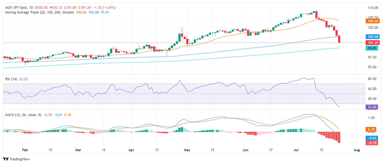 - AUD/JPY extends losses, plunging to 101.20, marking the lowest level since early May.