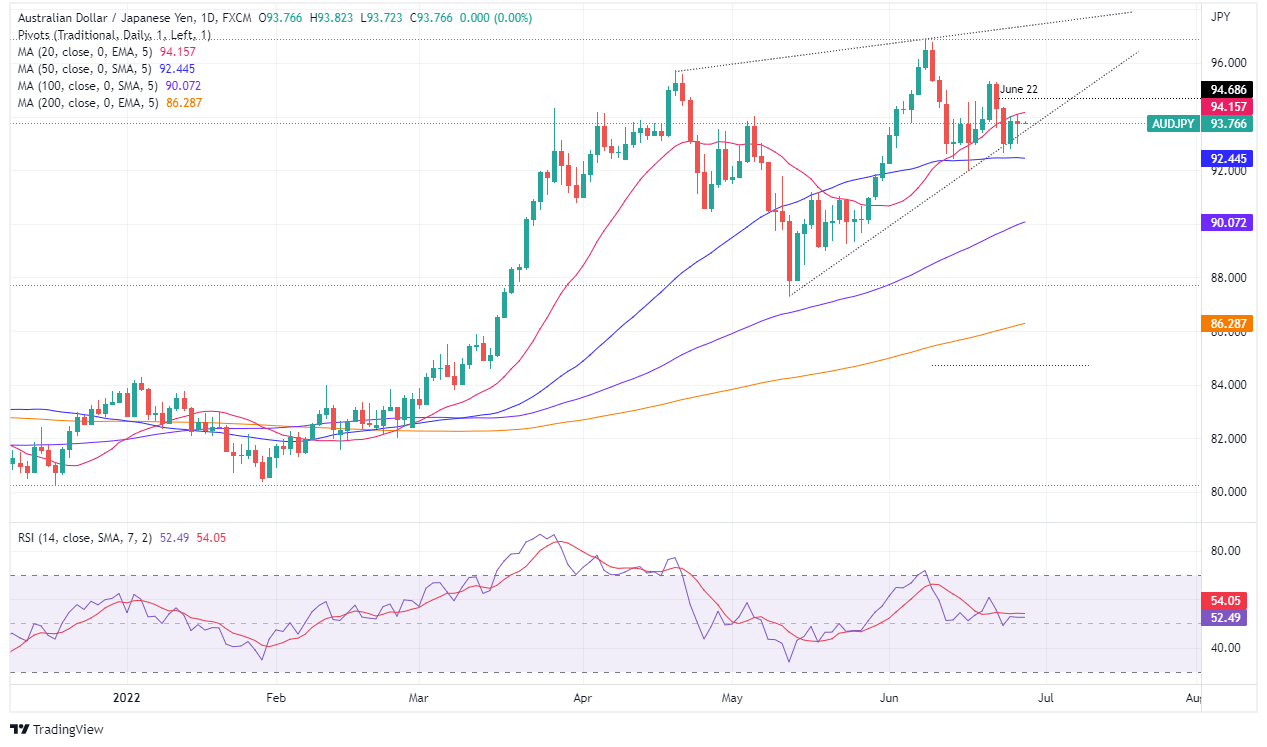 On the other hand, and on the path of least resistance, the AUD/JPY’s first resistance would be the 200-EMA at 93.77. A breach of the latter would expose 94.00, followed by the R1 daily pivot at 94.23, followed by the confluence of June 22, and the R2 daily pivot at 94.68.