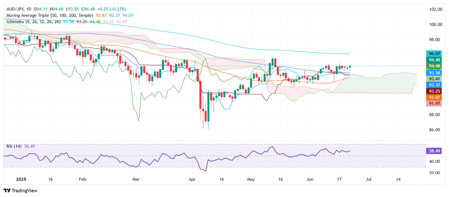 AUD/JPY Price Forecast: Consolidates above 94.30 as Trump announces ceasefire in Middle East