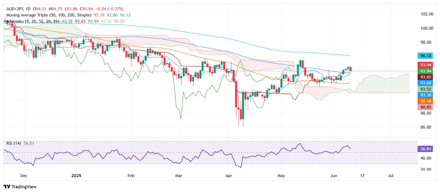 AUD/JPY Price Forecast: Hits monthly high, retreats below 94.00 as bearish signal emerges