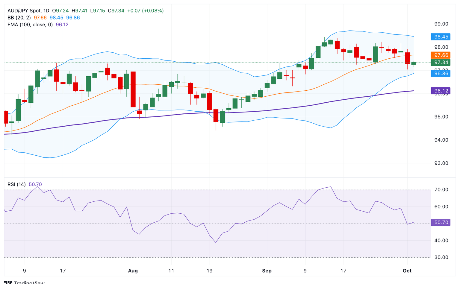 - AUD/JPY trades in positive territory around 97.35 in Thursday’s early European session.