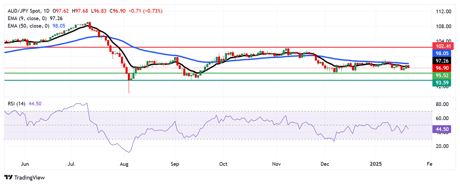 AUD/JPY Price Forecast: Pulls back from nine-day EMA near 97.50