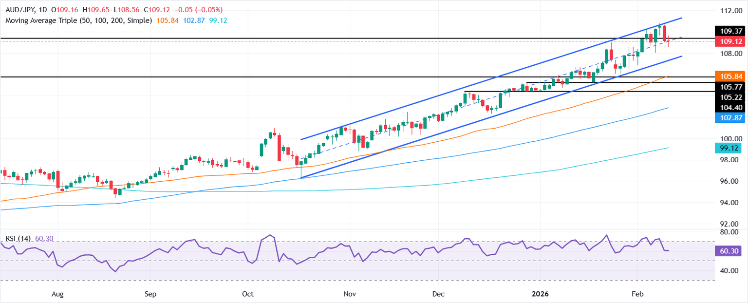 The Aussie Dollar depreciates against the Japanese Yen on Wednesday, down by more than 1%, courtesy of broad Yen’s strength, courtesy of the landslide victory of Prime Minister Takaichi over the weekend. At the time of writing the AUD/JPY trades at 109.23.