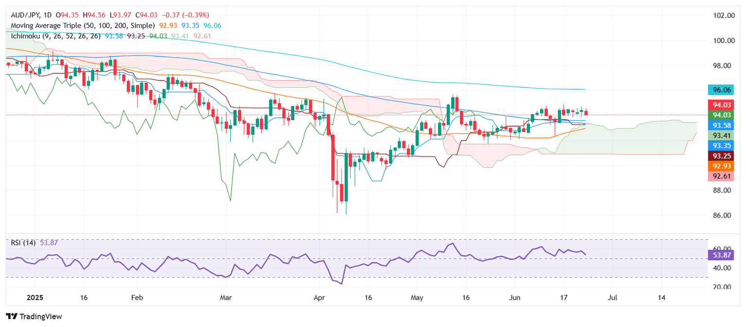 AUD/JPY Price Forecast: Slips below 94.00 as Middle East de-escalation lifts safe havens