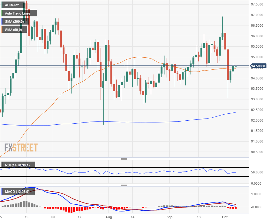 The AUD/JPY caught some restrained lift on Thursday, climbing into an intraday high of 94.70 and heads into the Friday Asian market session trading just shy of 94.60.
