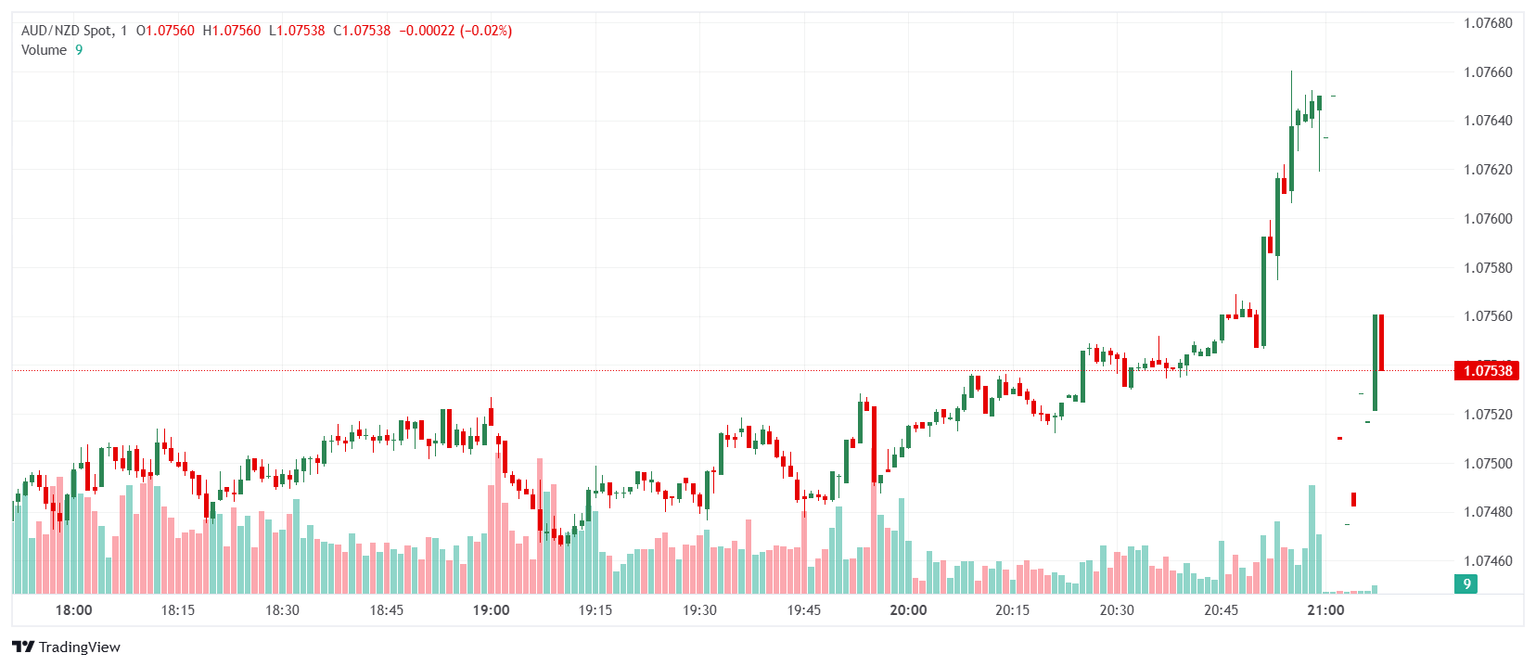 - AUD/NZD was seen trading around the 1.07 area, registering a slight decline on the day.