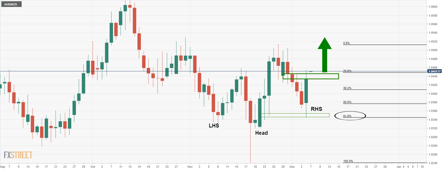 AUD/NZD is a touch higher on the day by some 0.1% following a stronger performance on Monday whereby the cross rallied from the 1.0350s to test and close above daily resistance near 1.0430.