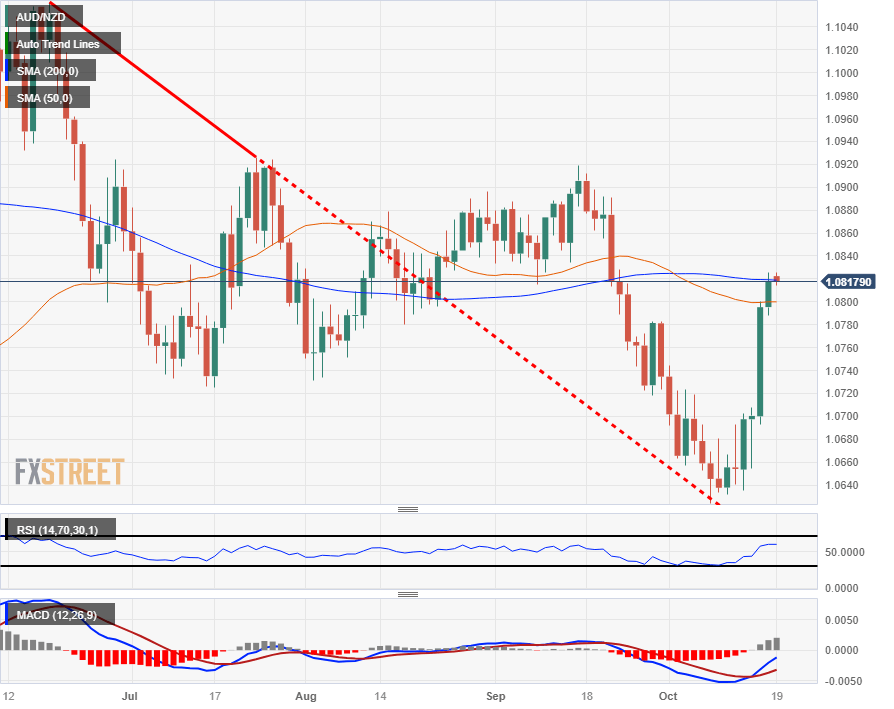 The Aussie has rebounded firmly against the Kiwi as the NZD flubs market value, sending the AUD/NZD into median prices at the 200-day Simple Moving Average (SMA), with September's last swing high at 1.0918.