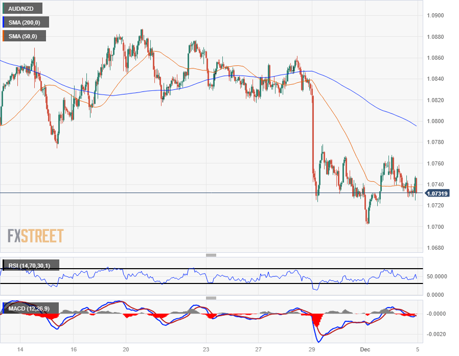 The AUD/NZD has been stuck near 1.0730 since a backslide from 1.0860 last week, and the Aussie-Kiwi pairing tumbled out of a near-term consolidation range to trade into an entirely new range just north of the 1.0700 handle.