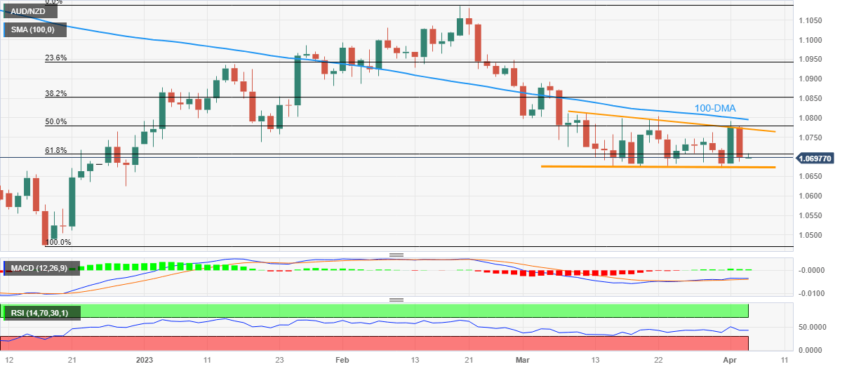 AUD/NZD remains pressured around 1.0700 as traders await the Reserve Bank of New Zealand (RBNZ) monetary policy decision on early Wednesday.