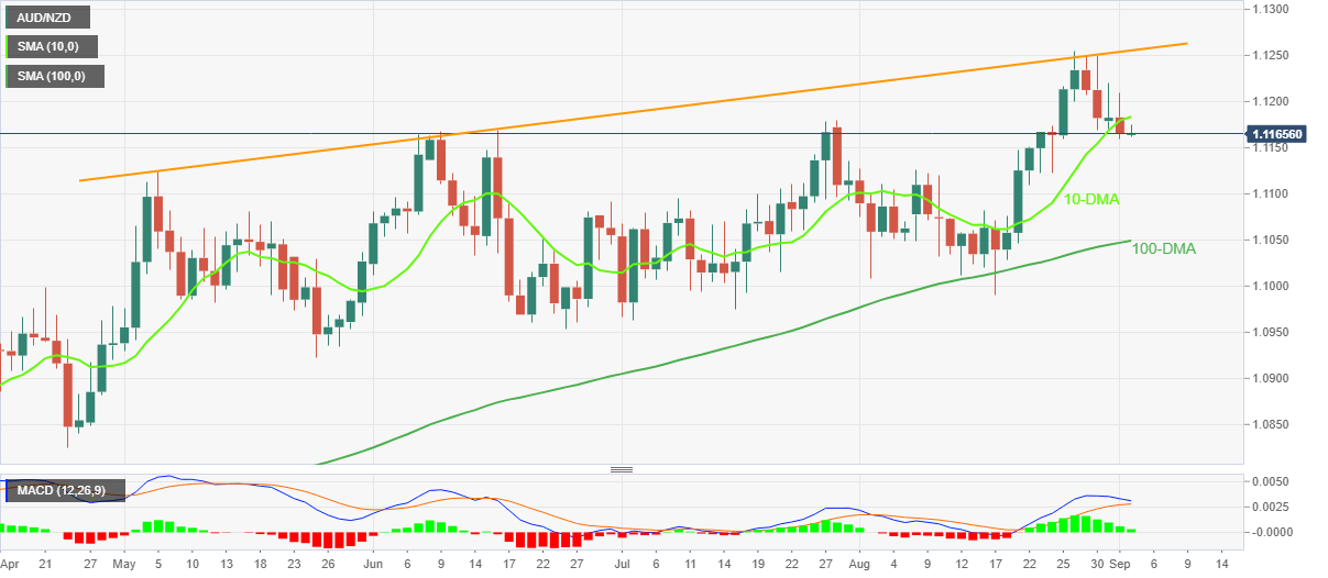 That said, the quote’s successful trading below the 10-DMA, around 1.1185, directs AUD/NZD towards the early August swing high near 1.1125.