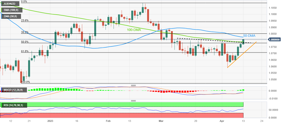 With this, the AUD/NZD bulls are all set to prod the 50-DMA hurdle of 1.0824. However, the previous monthly high of around 1.0895 and the 1.0900 round figure may check the upside moves afterward.