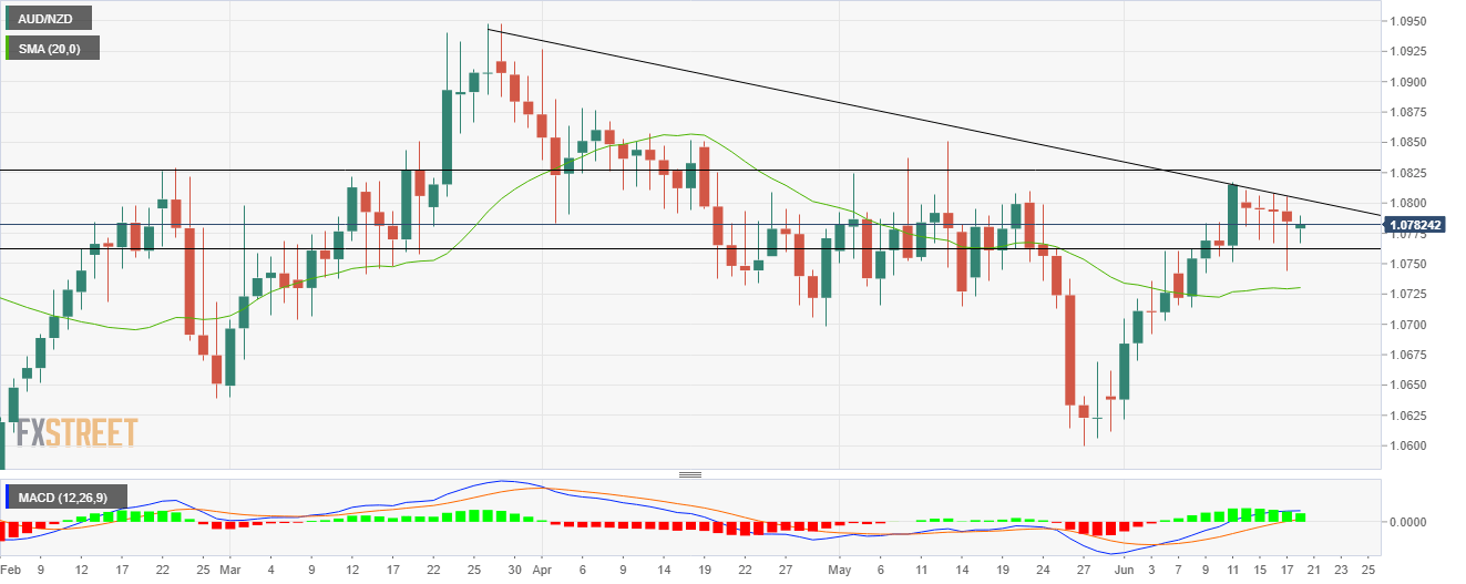 AUD/NZD bulls would keep their eye on the 1.0825 horizontal resistance level.