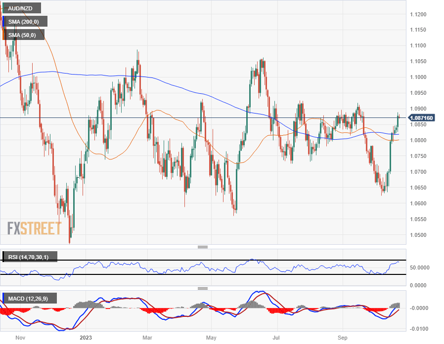 intraday trading has the pair catching some firm lift on the hourly candles, with prices consistently getting bolstered by technical support from the near-term 50-hour Simple Moving Average (SMA), currently huddled near 1.0852 after the AUD/NZD caught another rebound from the MA at the outset of Wednesday's trading.