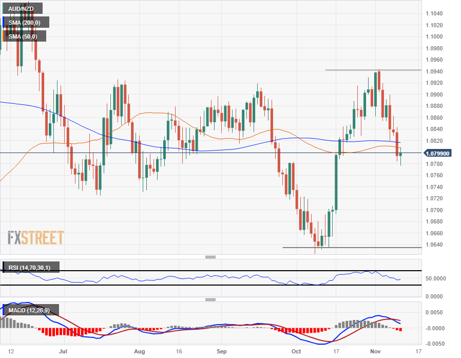 The pair still remains down almost 1.4% from the last meaningful swing high into 1.0945 and Aussie bidders are beginning to run out of track as the AUD/NZD rotates into a bearish technical pattern, slipping below the 200-day Simple Moving Average (SMA) and on pace to extend declines back into the last low set in October near 1.0640.