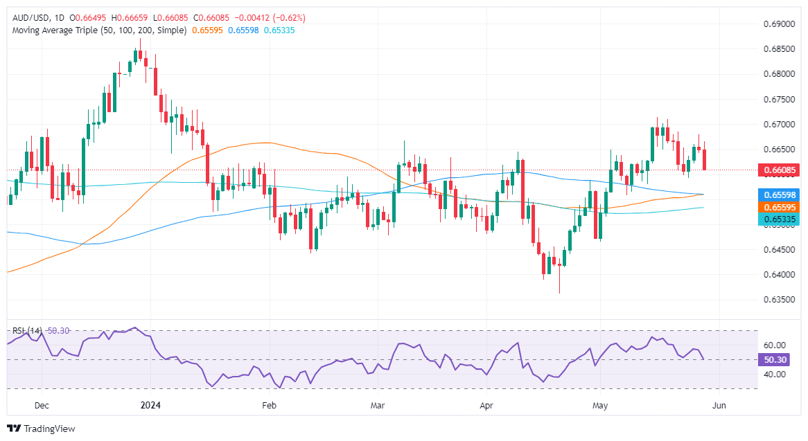 Despite remaining bullish-biased, the AUD/USD seems poised for a pullback if buyers fail to defend 0.6600. Momentum shows that sellers are stepping in, as the Relative Strength Index (RSI) pierced below the 50-midline. This could pave the way for increased selling pressure, driving prices lower.