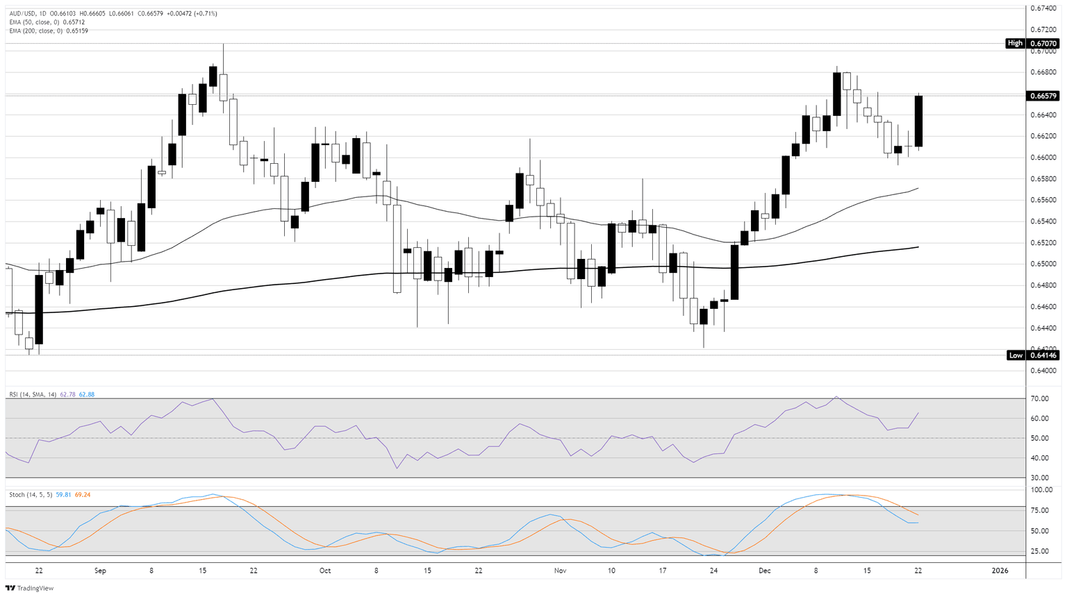 AUD/USD drove higher on Monday, climbing back into the 0.6660 region following an extended near-term decline. The Australian Dollar (AUD) took a lifeline thrown by broad-market Greenback flows that see the safe-haven US Dollar (USD) on the retreat heading into the holiday shutdown.