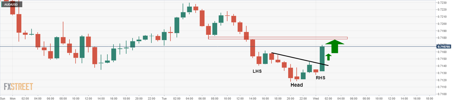''On the hourly chart, AUD/USD had been forming a bullish reverse head & shoulders ahead of the data as follows: