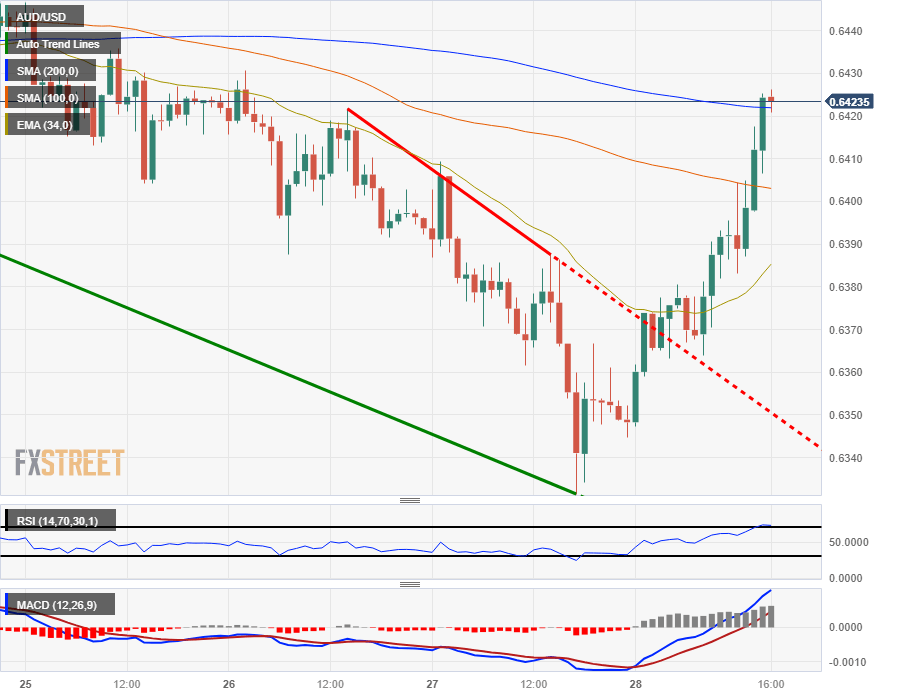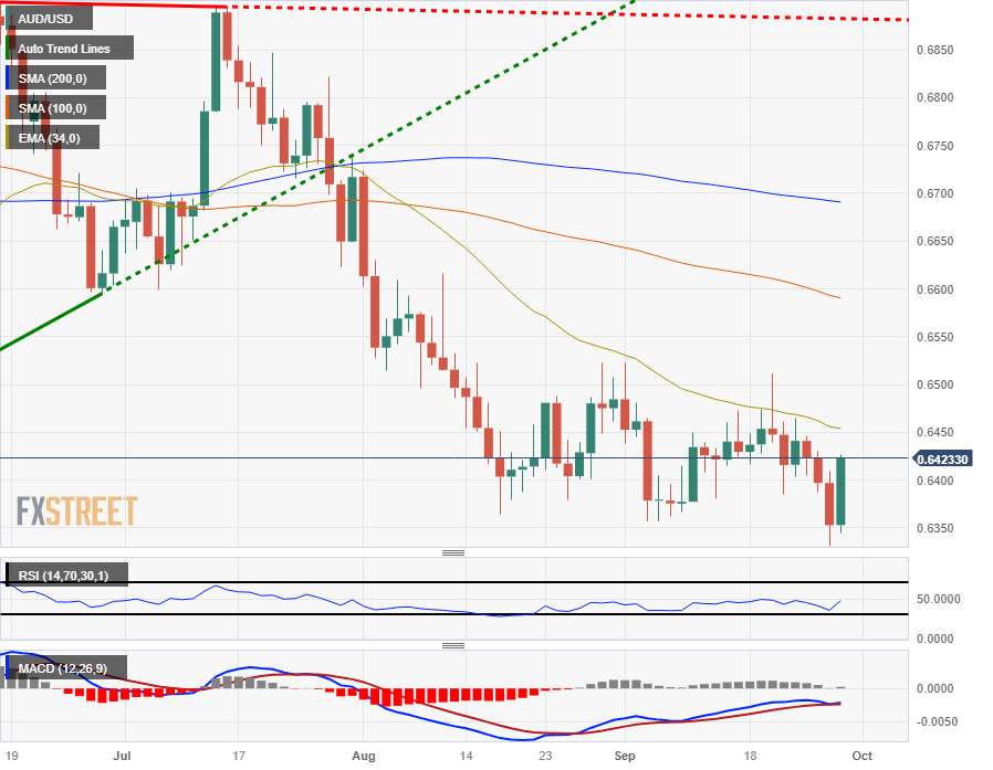 The AUD/USD has caught a much-needed bounce from near-term lows around 0.6340, and the pair is up over 1% after reclaiming the 0.6400 handle in Thursday trading. The Aussie-Dollar pairing is currently taking a breather and marking in territory near 0.6420.