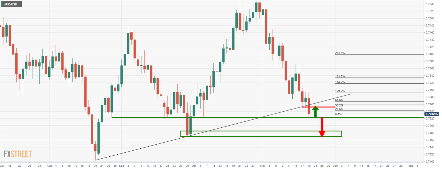 - AUD/USD bears stay in control into daily support but correction in sight.
