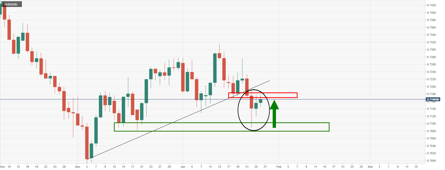 AUD/USD depends on the Fed, but bears are waiting in the wings for downside daily extension